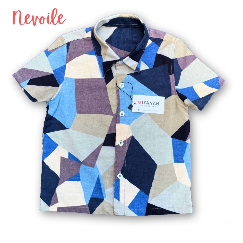 Kids Boys Linen Shirt – Navy Blue with Purple shapes Design | Code 5106